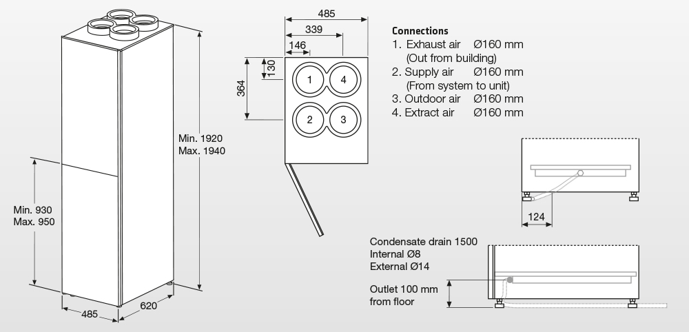 | Duct connections | 4 x 160 mm | 4 x 160 mm |