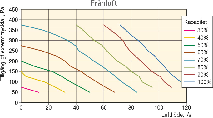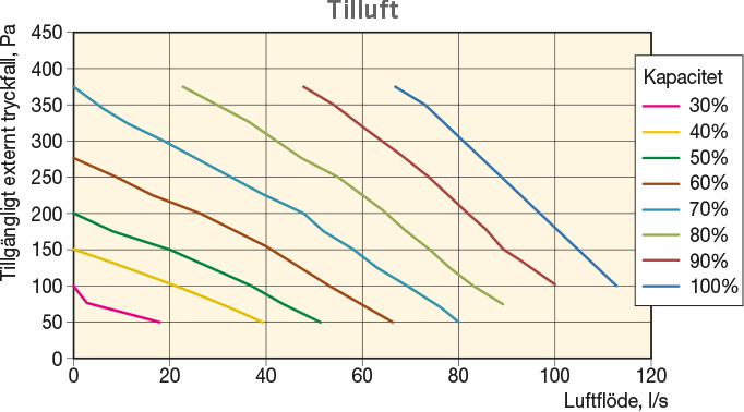 | Märkeffekt eftervärmare | 1500 W, (2800 W tillval) vid 85 l/s |