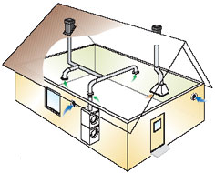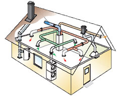 Fungerar egentligen likadant som ett självdragssystem med den skillnaden att en fläkt kan garantera ett visst minimiflöde även under den varma årstiden.